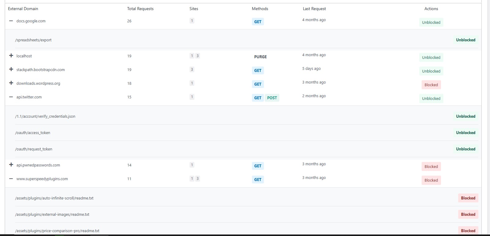 Neem de controle over de beveiliging van je WordPress-site door alle externe verbindingen te bewaken en beheren. Deze krachtige plugin geeft je volledig inzicht en controle over de externe services waarmee je site communiceert.